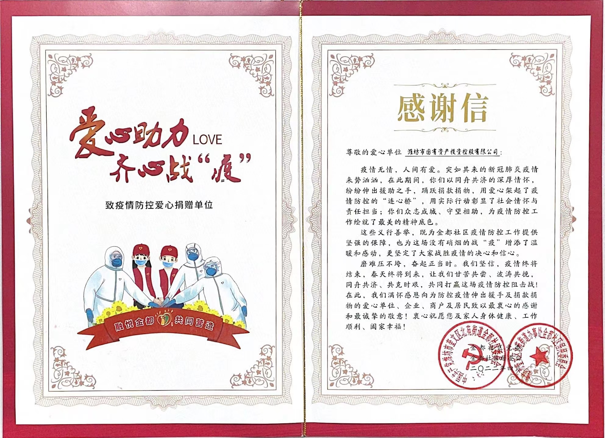 5月7日,市國投公司收到了一封來自金都社區(qū)的感謝信,信中對市國投公司第一時間馳援社區(qū)疫情防控工作,積極協(xié)調(diào)捐贈抗疫物資等志愿行動表達(dá)了衷心的感謝。截至目前,公司向社區(qū)捐贈醫(yī)用口罩、酒精、醫(yī)用手套、方便面等抗疫物資價值6000余元,前后5次通過電聯(lián)、...